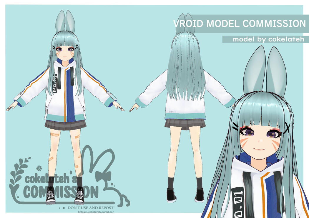 This type of comms, you can get the file (.vrm and .vroid file for custom your avatar) I can drop the avatar into VRChat but additional fee(s) applied.Prices including commercial use for new Vtuber!